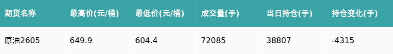 南财智讯4月9日电,盘后期货数据显示,上期能源的原油主力合约收跌3.67%,收盘报640.0元/桶,日内资金流出8.55亿元。其他相关指标见下表: